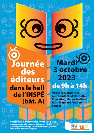 Le mardi 3 octobre il sera possible de rencontrer cinq délégués pédagogiques, qui seront installés dans le hall de l’INSPÉ sur le site universitaire de Mâcon (bâtiment A), de 9h à 14h. Ils représentent les éditeurs suivants : Hachette Education, Hatier, Foucher, Magnard, Vuibert, Nathan, MDI, Le Robert et Retz. Vous pourrez découvrir sur leurs stands les dernières parutions et les ouvrages de référence de ces éditeurs, échanger sur leurs exploitations pédagogiques possibles (notamment pour les manuels scolaires).