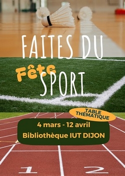 En cette année olympique, la BU IUT Dijon vous propose une sélection thématique sur le sport. De quoi vous donner envie de lire et de vous dégourdir les jambes avec l’arrivée du printemps ! Ces documents seront à votre disposition du 4 mars au 12 avril 2024.